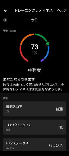 起床時のトレーニングレディネス↓まぁまぁかな。今日は外ライド、3時間のエンデュランスメニュー。なるべく心拍を上げずに走る。 気温はさほど高くないが湿度が非常に高くベタベタする。いつものトイレ休憩スポットに着いたがアブがブンブン飛んでいるので早…